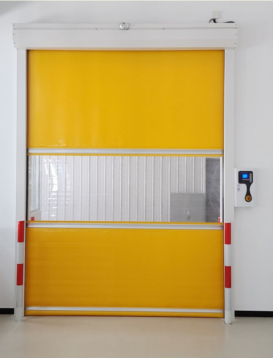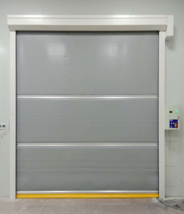 门帘采用优良PVC帘布,厚度为0.8mm,整体为分段式结构,通过铝合金抗风型材连接。
