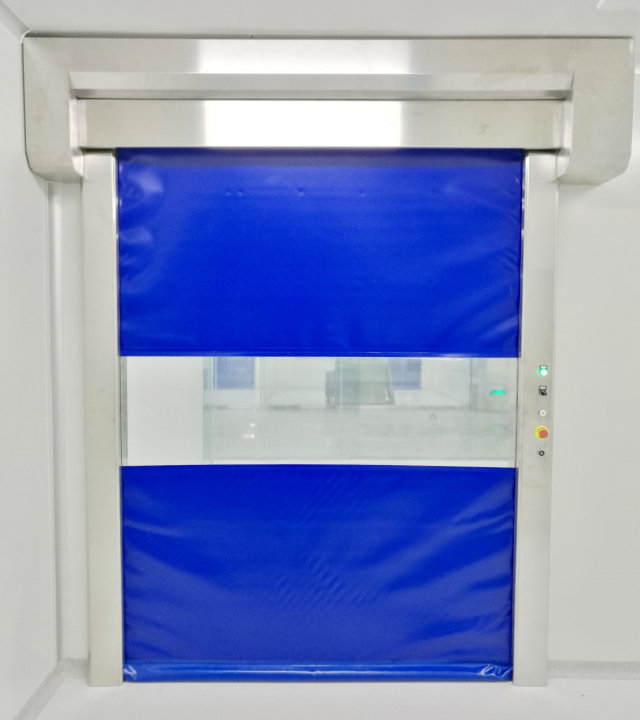 门帘采用优良PVC帘布,厚度为0.8mm,整体为分段式结构,通过铝合金抗风型材连接。